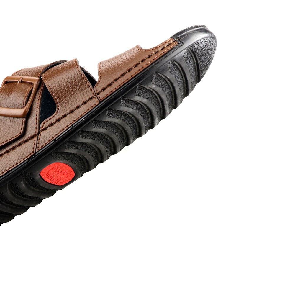 این صندل با رویه ای از جنس چرم مصنوعی با رنگ قهوه ای تیره، حس سنگینی و رسمی بودن را منتقل می کند. رنگ قهوه ای تیره، رنگی باثبات، مشحون و شفاف است که حس اعتماد به نفس و جذابیت را به فرد می بخشد. زیره پلی اورتان این صندل، مقاومت و دوام بالایی دارد و راحتی فوق العاده ای در هر قدم برای شما به ارمغان می آورد.