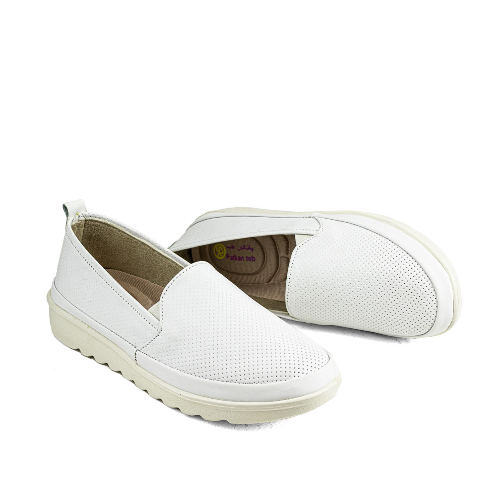 کفش پاتکان مدل ۳۹۶ با طراحی کلاسیک و رنگ خنثی سفید، برای استفاده در موقعیتهای مختلف مناسب است.